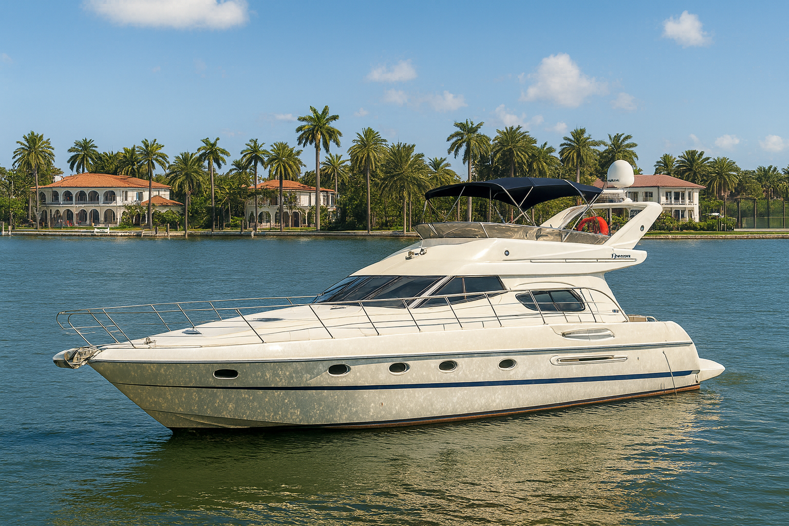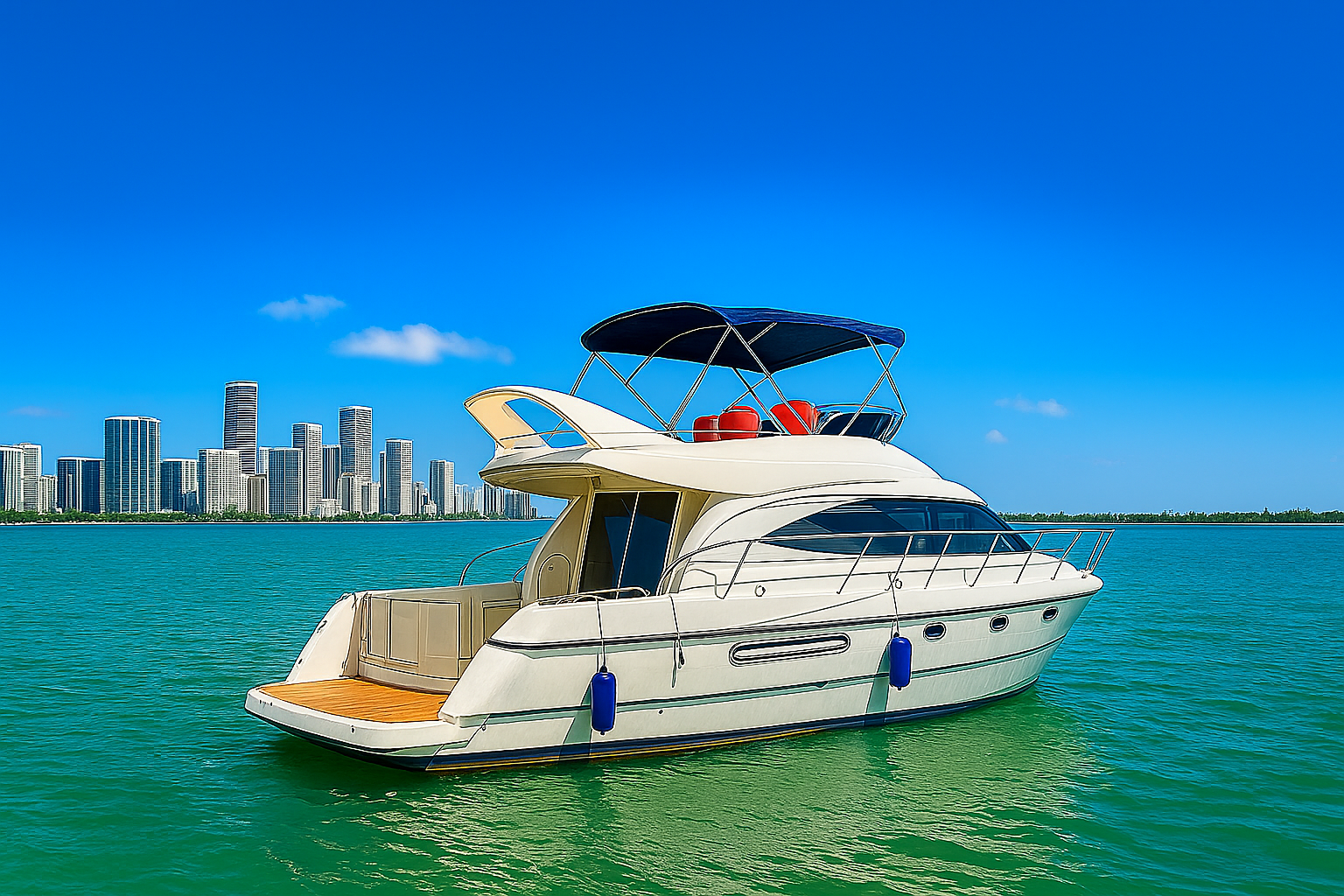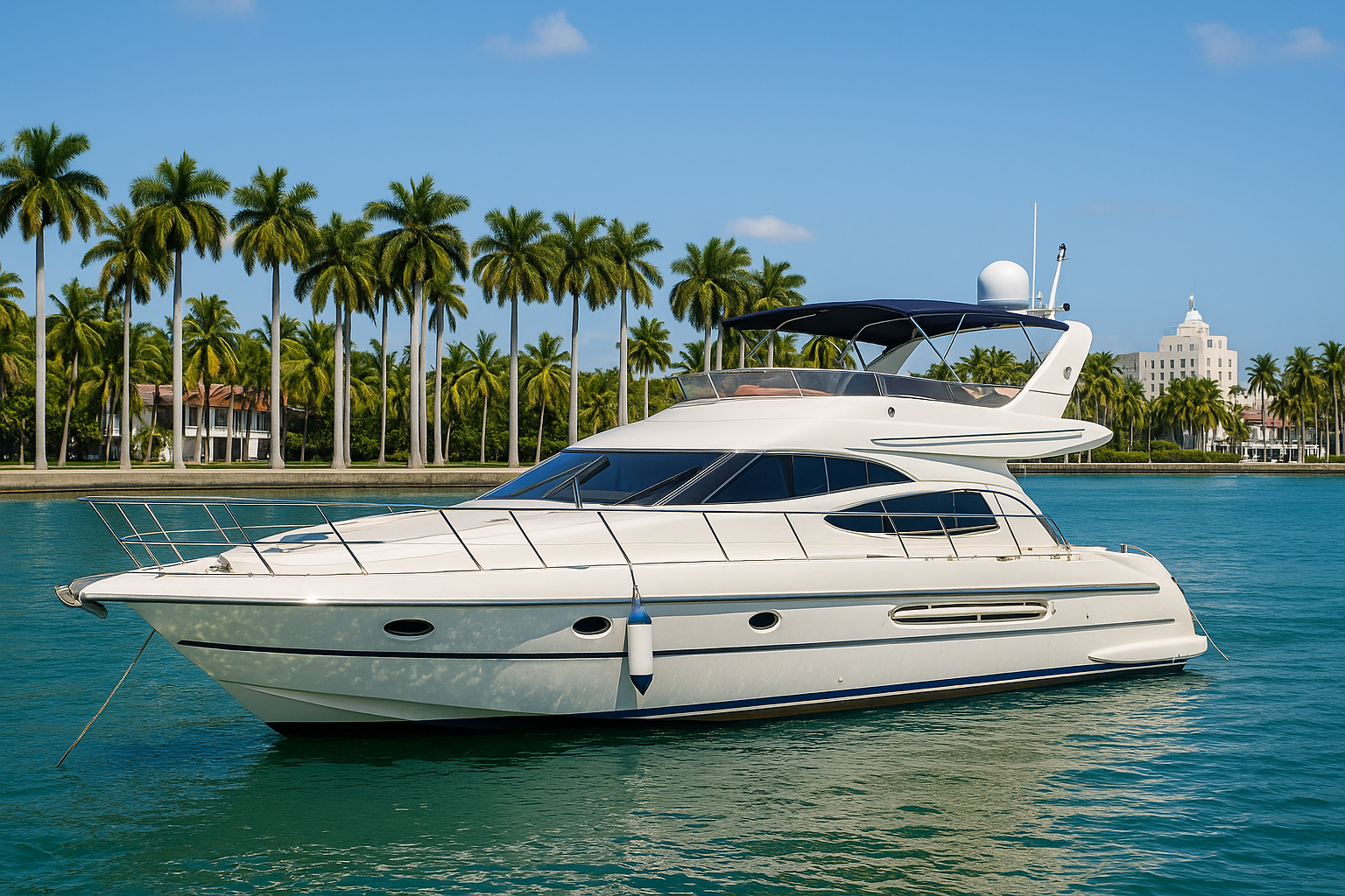 Enjoy Miami aboard a luxury 48ft Cranchi Atlantique, perfect for up to 12 guests. Spacious cabins, panoramic flybridge, sun deck, premium sound, and professional crew included. Ideal for sandbar adventures, sunset cruises, and well designed routes.